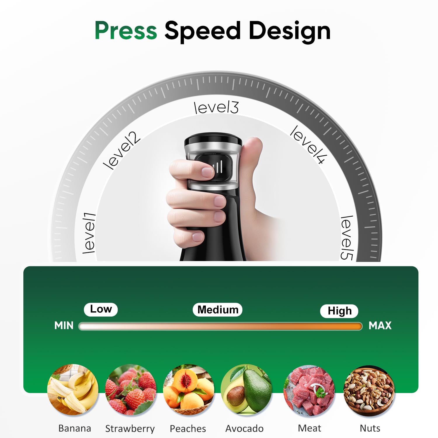 Gatgoods Immersion Blender Corded Hand Blender With Variable Speed, Turbo Mode & Attachments For Whisking, Chopping, Frothering, Pureeing & Emulsions