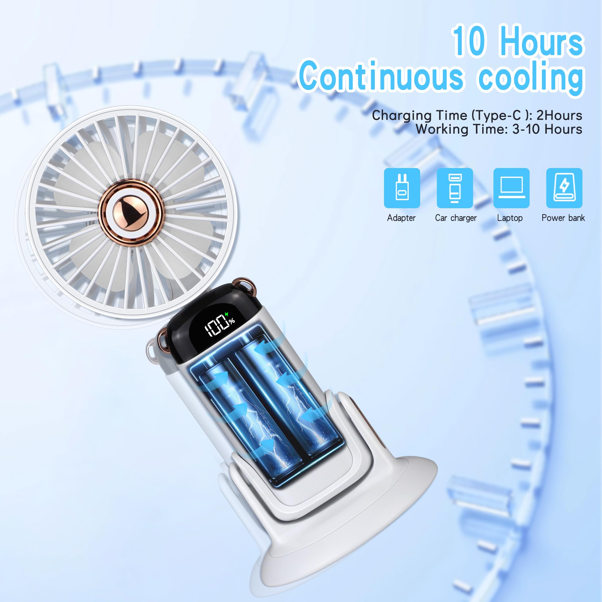 Gaiatop Mini Neck Fan, Rechargeable Led Power Display 3 Speed 360°Rotate Lash Makeup Mirror Cute