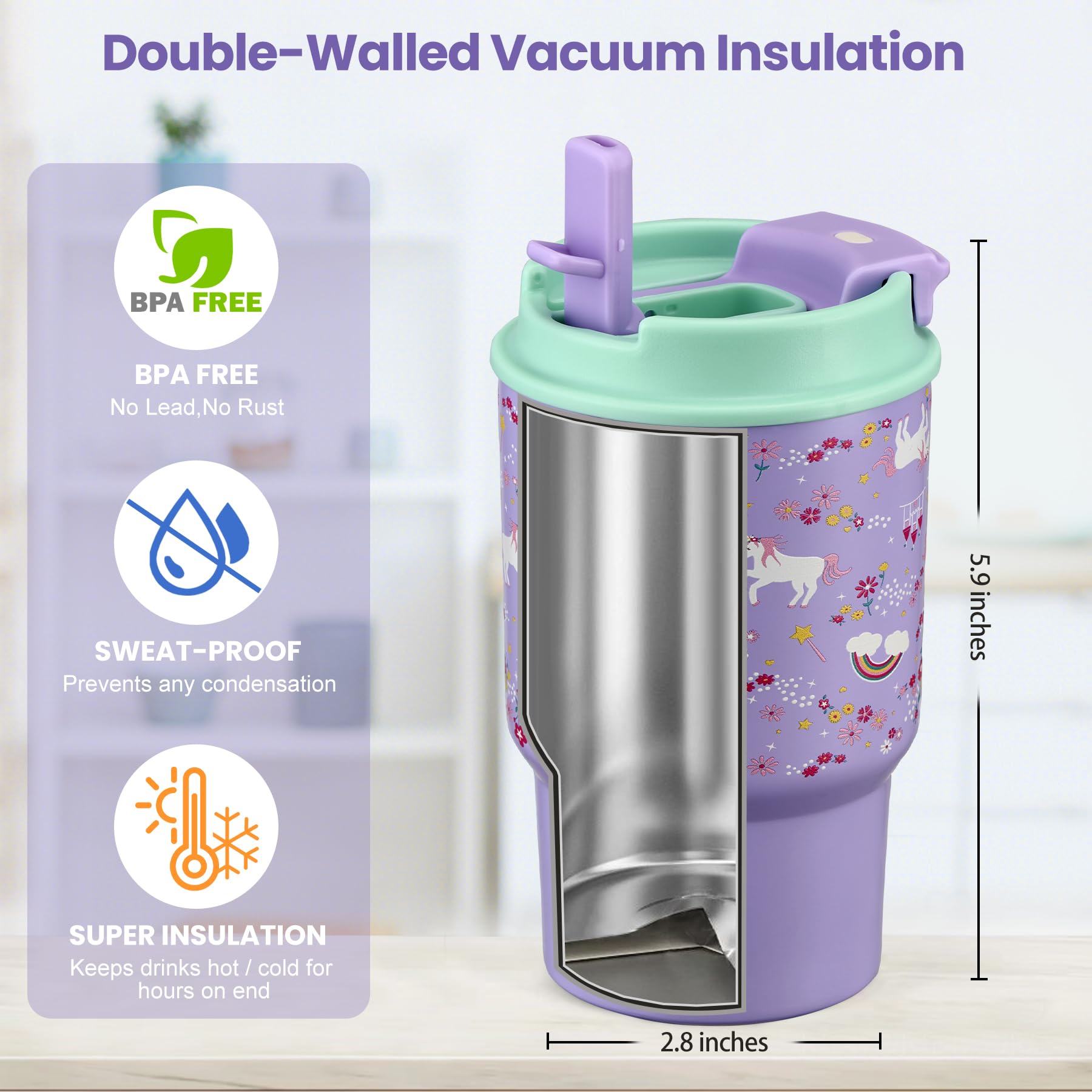 Agh 12Oz Stainless Steel Kids Water Bottle With Straw,Double Wall Vacuum Tumbler For Traveling