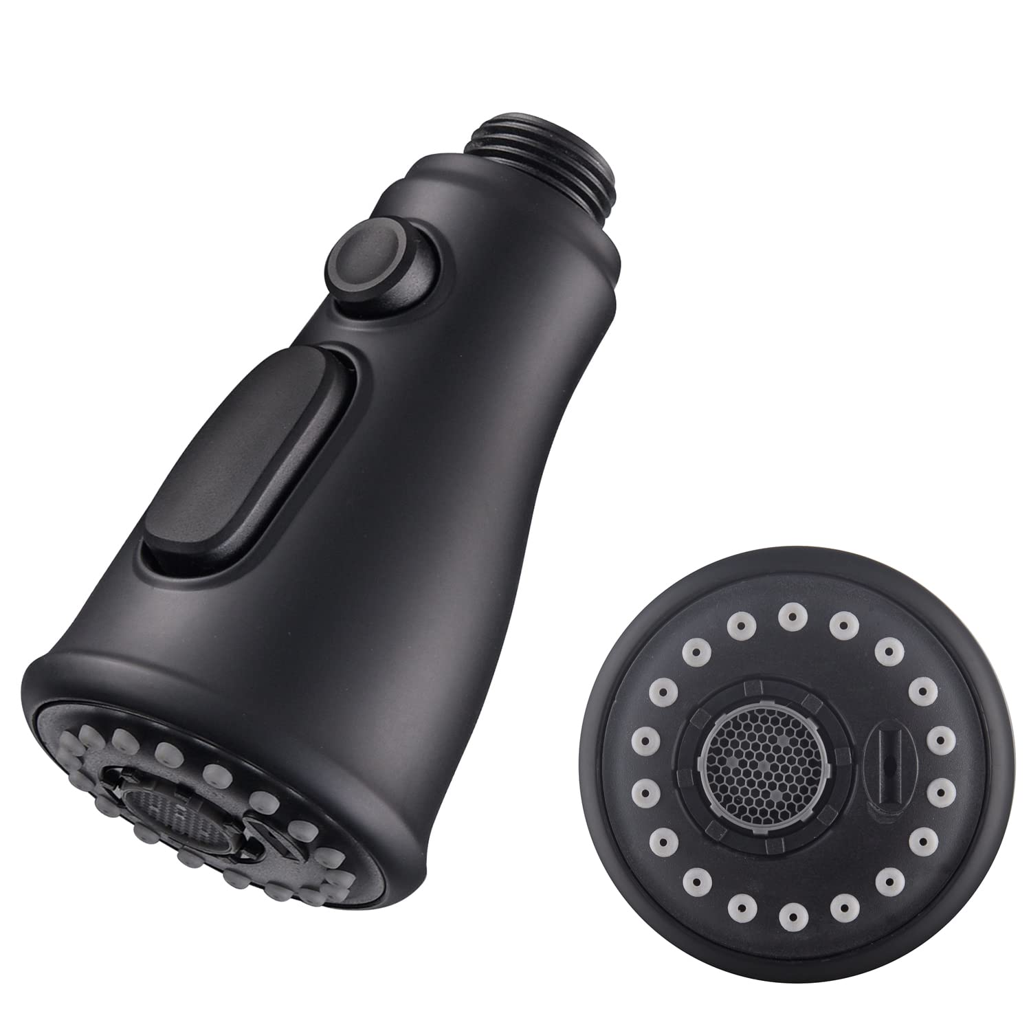Deokxz Kitchen Sink Pull Down Faucet Spout Replacement Black, 3 Function (Flow/Spray/Water Blade) Sprayer Nozzle With Check Valve, G1/2 Connector Only