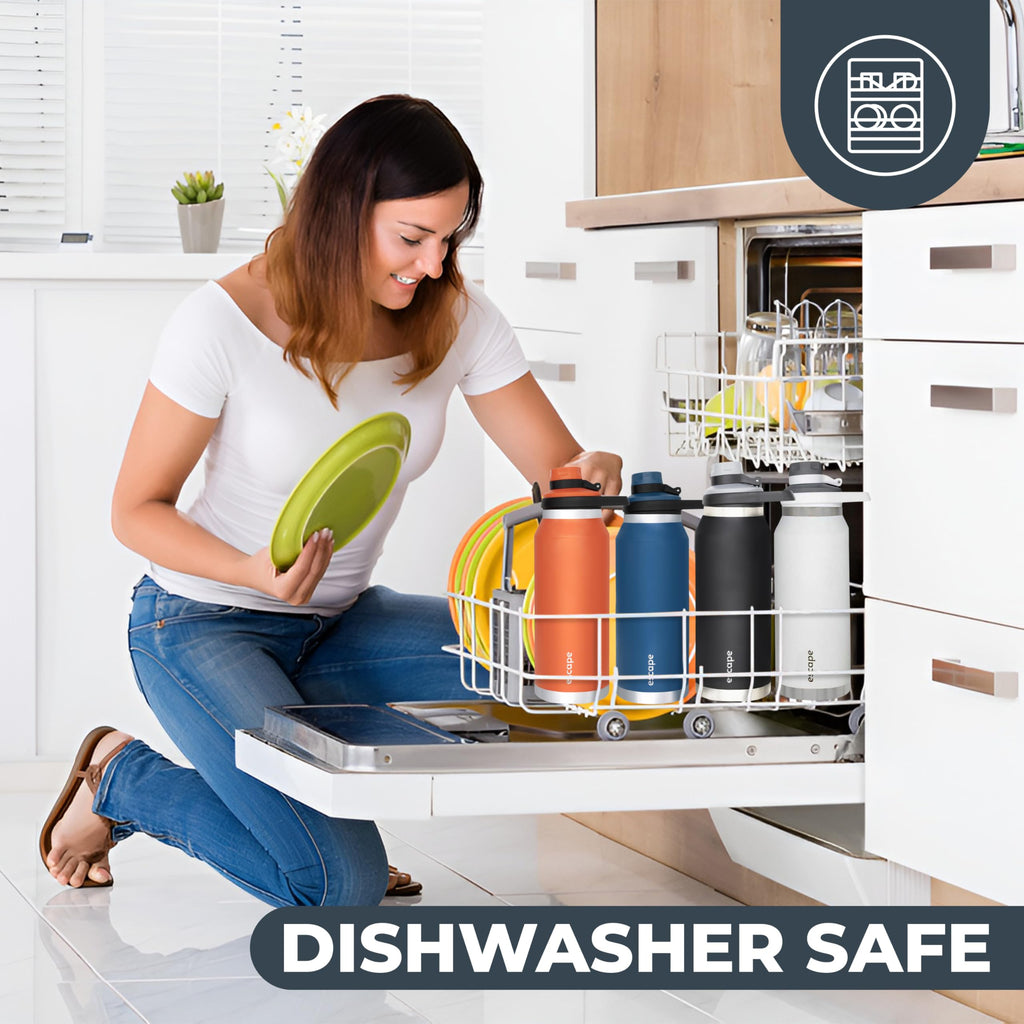 WIDE-MOUTH DESIGN: allows for easy ice insertion, easy to clean, sweatproof, and dishwasher safe. It also ensures no spills and leak proof, making it perfect for your everyday activities. BPA-FREE and ECO-FRIENDLY: Manufactured BPA-Free, making it safe for both you and the environment. Choosing this reusable water bottle is a healthy and eco-conscious decision.