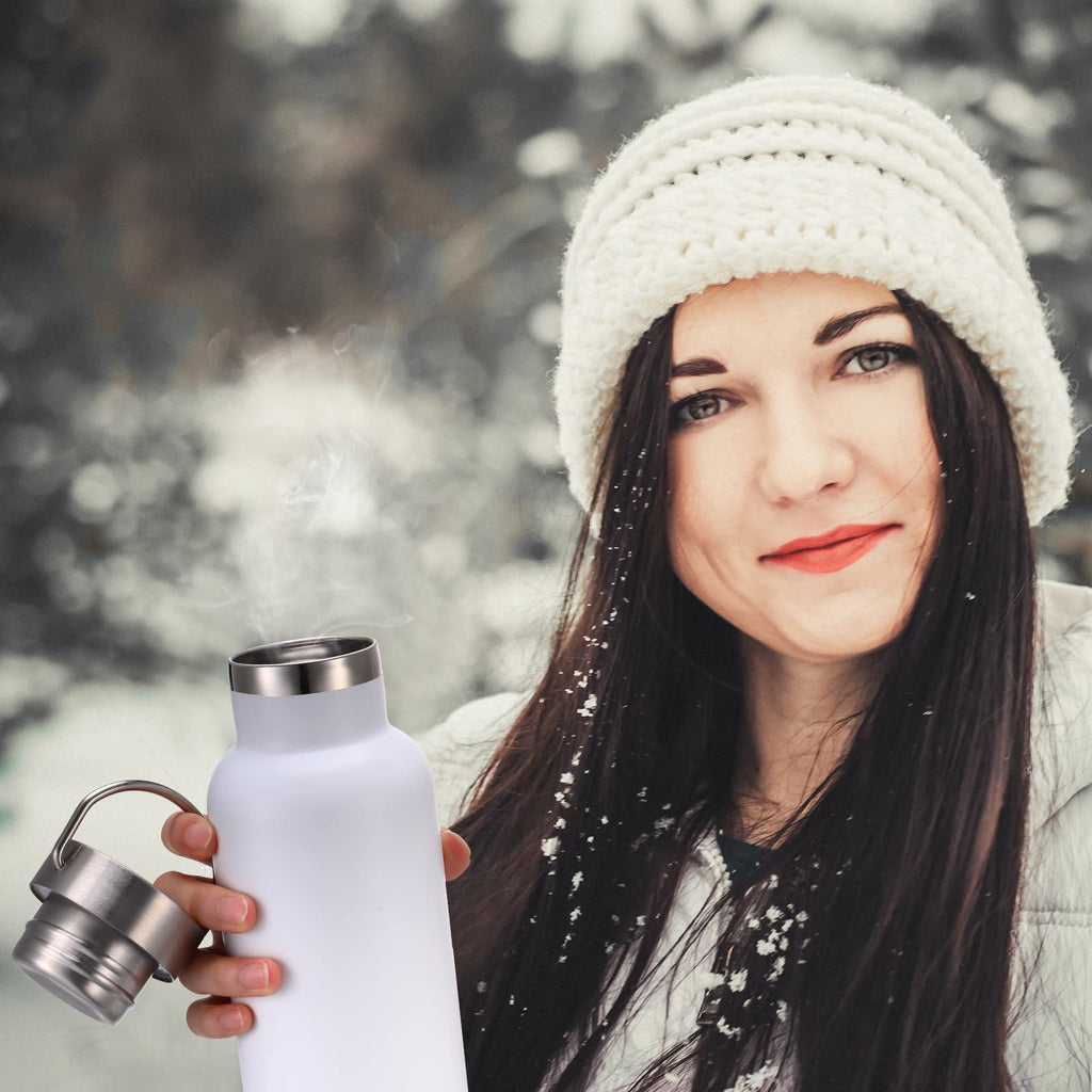 Double Wall Insulation: vacuum insulated metal water bottle is made of solid and quality food grade 18/8 stainless steel, which is rustproof and solid; Insulated stainless steel bottle adopts double layer design, cold and hot insulated, which can keep the drinks cool for several hours Easy to Carry: 20oz metal water bottle height is about 9.65 inches, width is about 3 inches; And the metal ring on the cap is big enough to carry around the bottle with 3 or 4 fingers so you can take it in school or office