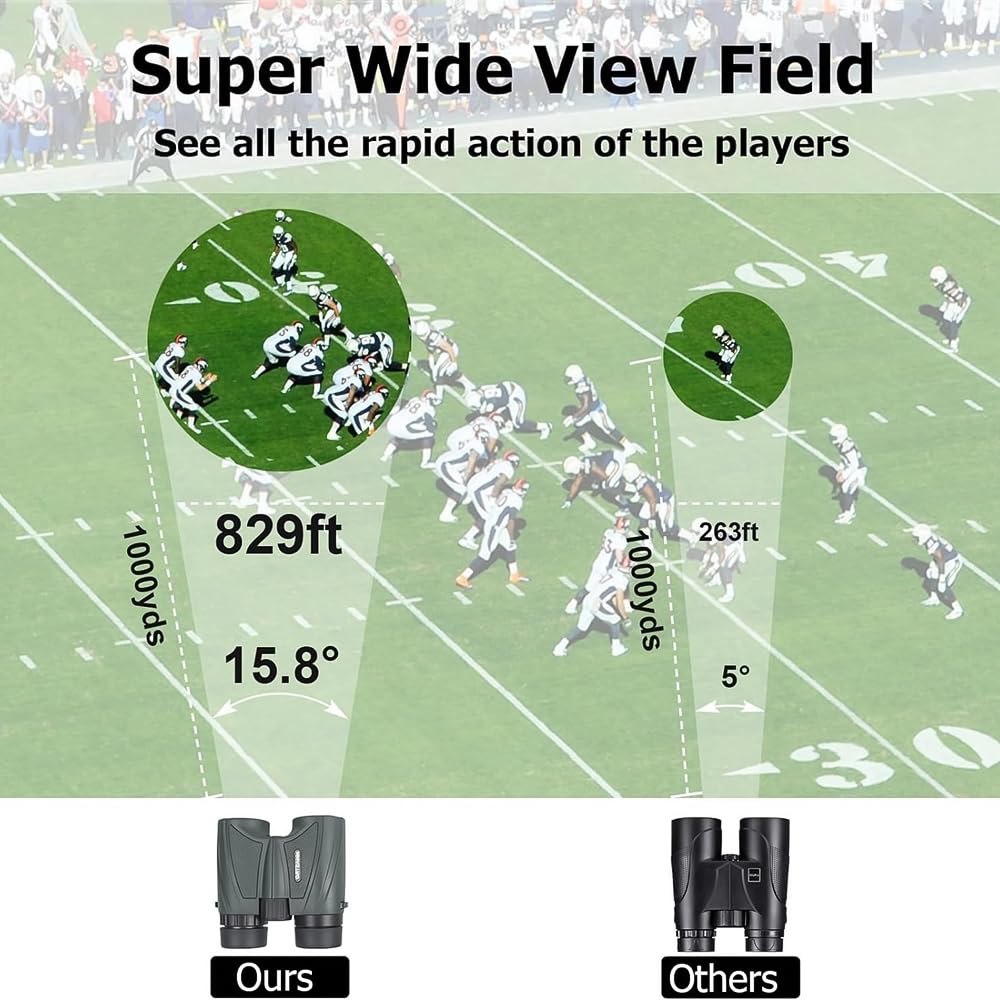 • 【Ultra Broad View Field】Experience a 15.8° ultra wide view field angle and 829ft/1000yds field of view, providing you with a panoramic perspective to capture every detail, from players scoring points to exciting events on the playing field.