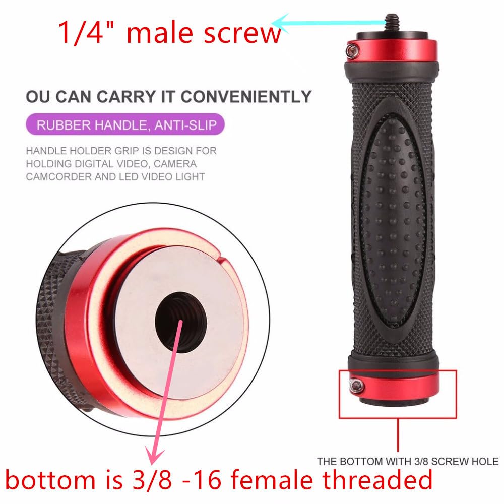 1.The grip handle for compact digital cameras or camcorder provides a comfortably handy grip attachment to any camera or camcorder with the standard 1/4 tripod socket.Shoots smooth and stable professional video. 2.Rubber handle, anti-slip. Made of aluminum, and convered with rubber of the antiskid safety design.there is a hole in the top of the screw for a hex wrench to adjust. 3.Superb metal construction body with durable rubber on surface.Anti-slip and ergonomic design, very comfortable to use. 4.Suitable For 1/4 screw attachment fits most SLR, DSLR, for point & shoot, and video cameras. Universal Handle Grip for DSLR Camera,Camcorder,Gopro, Smart Phone,Video Light. 5.Handle Grip can stabilize your compact camera or camcorder, particularly useful for small point-and-shoot cameras, handheld video recording devices, external flash, LED video lights,etc,. It works perfectly on action camera like gopro, and smart phone. NOTES: Handle Grip can stabilize your compact camera or camcorder, particularly useful for small point-and-shoot cameras, handheld video recording devices, external flash, LED video lights,etc,. It works perfectly on action camera like gopro, and smart phone. If you would like your little configuration to be roratable, you will just need a mini ball head to mount on top. To work on gopro camera, you will need a gopro mount(not included). To work on a smartphone, you will need to add a smartphone clamp mount(not included). Package includes: Universal Handle Grip(other accessories demo in the picture is not included.) This listing is for the handle grip only.Will comes without lanyard/camera/smartphone mount.