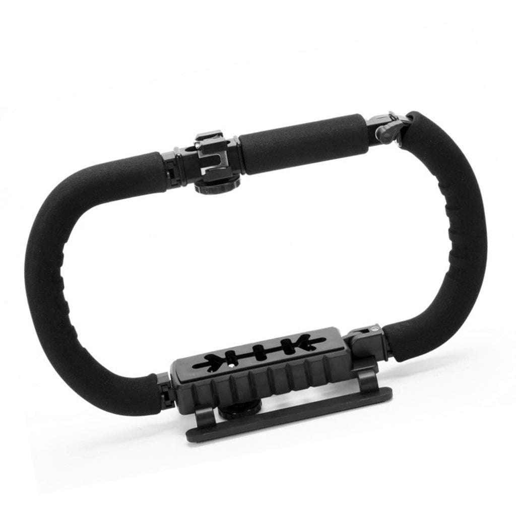 FOLDING STORAGE: When not in use, user can fold bracket storage, compact size and easy to carry, does not take up space. Anti-slip pad:: handle of video action stabilizer uses anti-slip design at bottom of hand-held stabilizer. 1/4 inch screw hole at bottom of bracket can be fixed on tripod, etc., effectively protecting your camera stabilizer.▶ 3 HEADS HOT SHOE: video action stabilizing handle grip use of three head hot shoe bracket, you can place microphone, flash, fill light and other equipment. This is must-have accessories for photography enthusiasts.