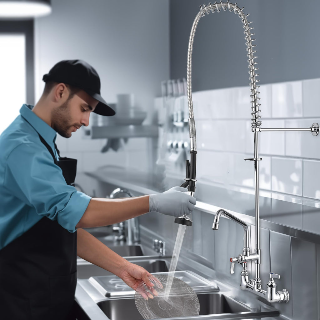 [Long Lifespan]: Feature brass faucets, stainless steel spring and zinc alloy lever handle for rust-resistance, while sprayer hose supports bending up to 100,000 times, and brass faucet cartridge s opening and closing up to 500,000 times, ensuring frequent use over extended periods [Strong Water Pressure]: The valve-controlled sprayer is equipped with a 38" high-arching spring hose which can be easily stretched, producing strong water pressure and reaching all corners of the sink for effective dish rinsing and washing; Replacement Sprayer Head is sold on KSK(B09TQP3Z55), please reach out to us if needed