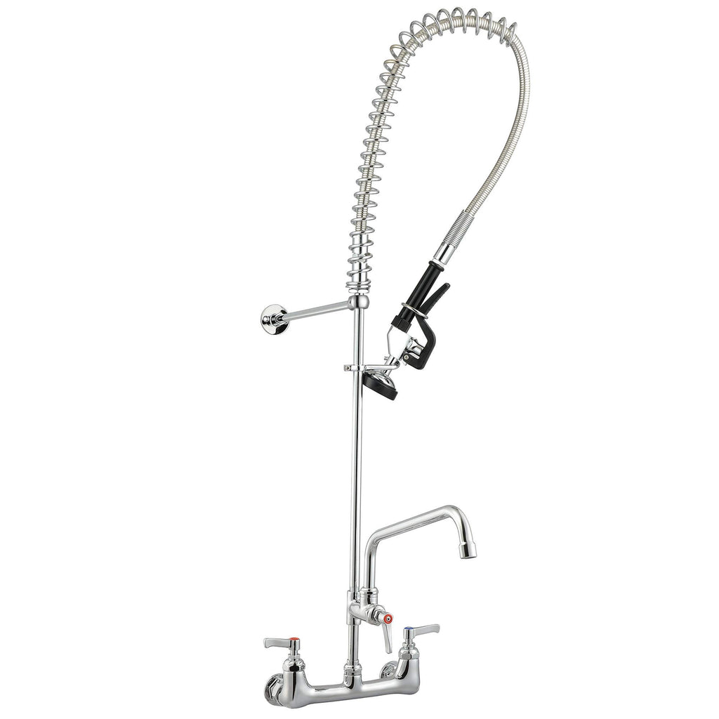 • [Multifunctional Faucet]: Comes with a 12" swivel add-on faucet that can rotate 360 degree to reach different sinks; Double lever handles for conveniently adjusting water temperature and flow rate of add-on faucet & sprayer