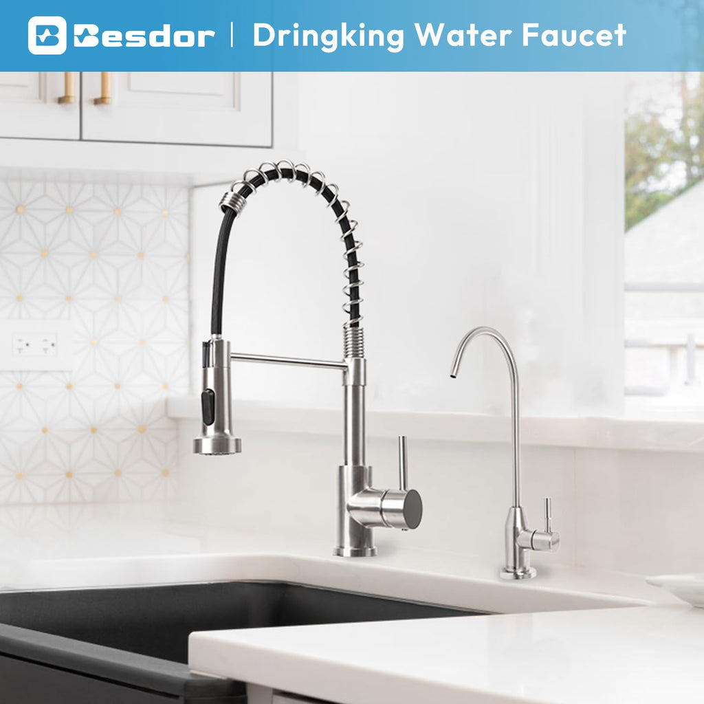 • Quiet & No-clogging: Our non-air gap filter water faucet is different from the air gap faucet, it is fully sealed and has no secondary pollution. It also can effectively reduce the risk of clogging caused by sediment, and keep quiet during usage.