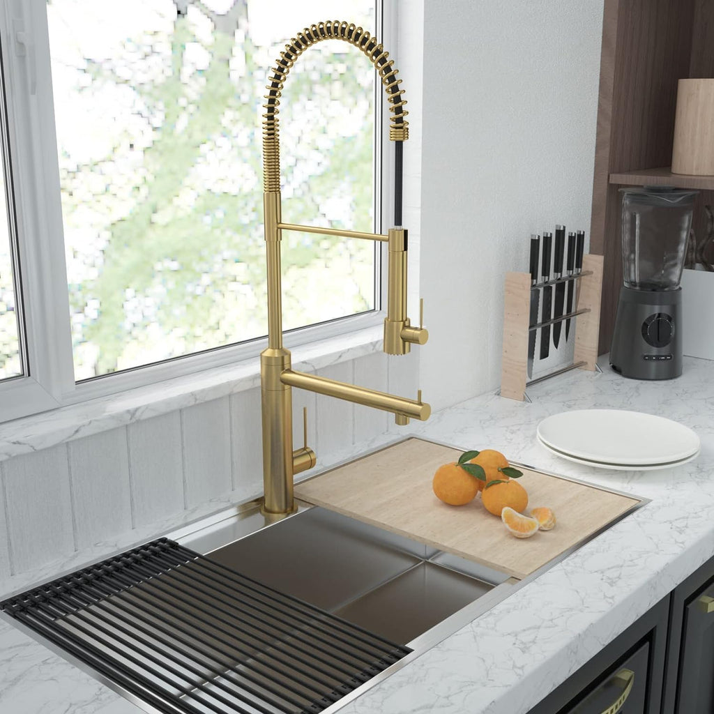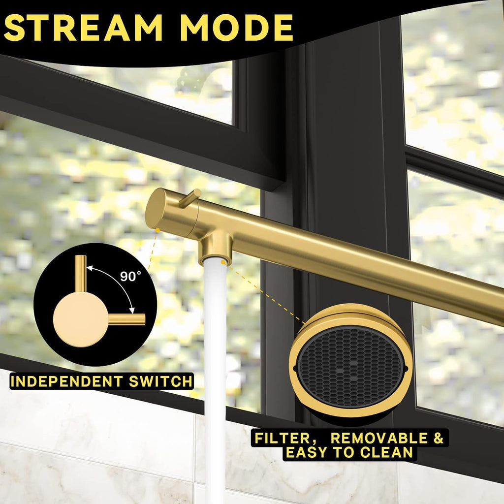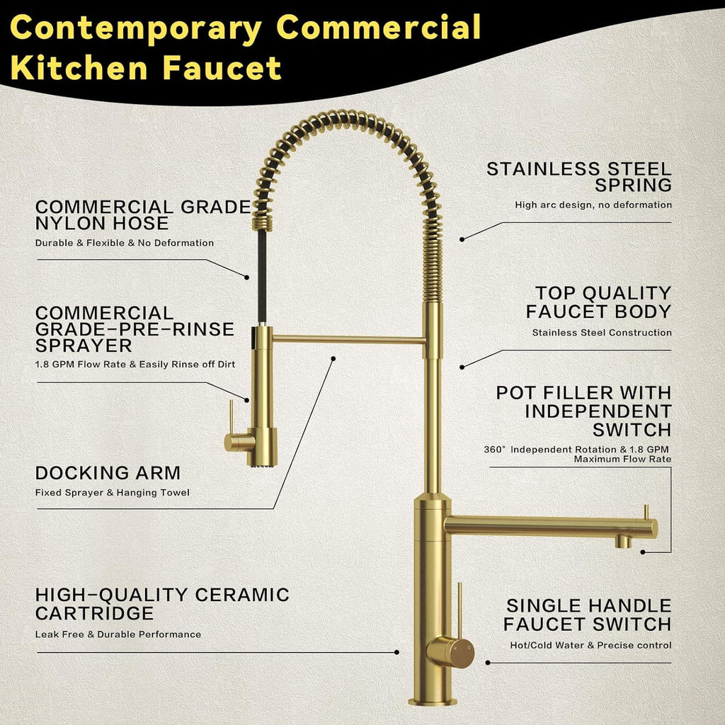• 2-FUNCTION STYLE The kitchen faucet with pull-down sprayer and Pot Filler can be turned on at the same time, when your lover is using the sprayer to prepare breakfast, you can use the pot filler to assist or do what you want to do, it can save your time to help you easily complete various kitchen tasks.(Please note that Pre -Rinse Sprayer cannot be out out, but only supports Pull Down, please pay attention to use it correctly)