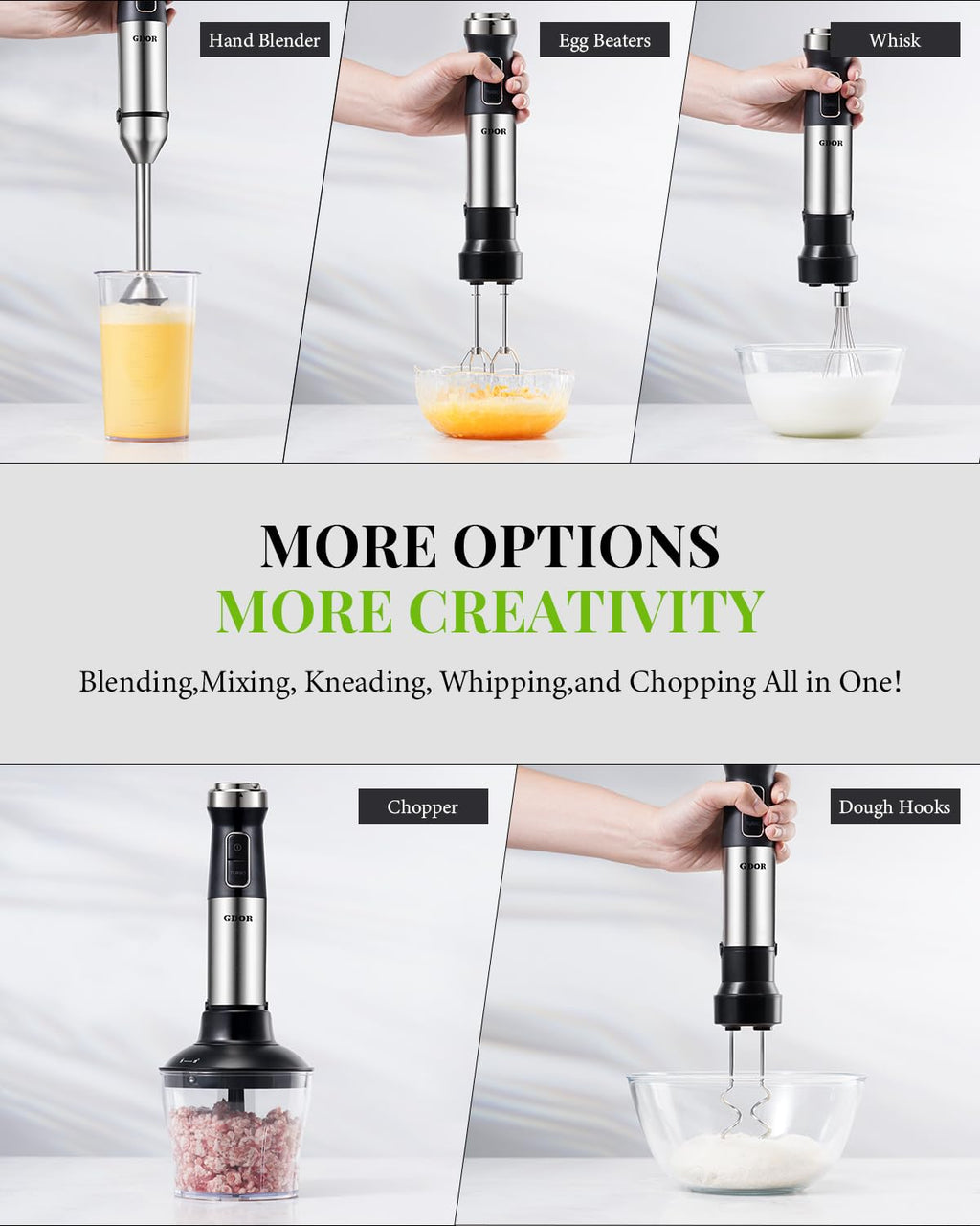 Powerful & Time-Saving - With A Maximum Power Of 1000W, Our Gdor Immersion Blender Handheld Provides Powerful Performance, Effortlessly Handling A Variety Of Ingredients From Pancake Batter To Blending Smoothies. And It'S Fast Too, Saving You Valuable Time Prevent Container Scratches And Splatters - The Immersion Blender Haves A Scratch Resistant Blade Guard, Meaning You Can Blend In Your Containers Without Fear Of Scratching. The Bell-Shaped Guard Minimizes Splattering And Ensures Rapid And Finer Results.