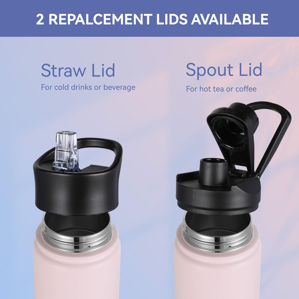 • Spout Lid and Straw Lid: This water bottle comes with 2 lids: an innovative leak-proof spout lid and a newly improved straw lid that has been enhanced for better flow. You can choose suitable lid based on different situations, which increases your options.The wide mouth design makes it very convenient for adding ice or cleaning the inner walls of the bottle
