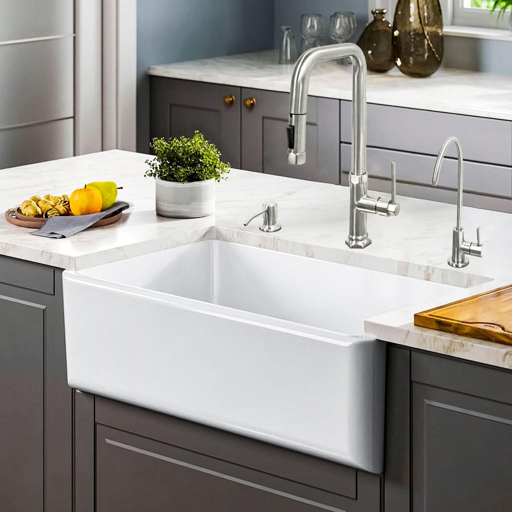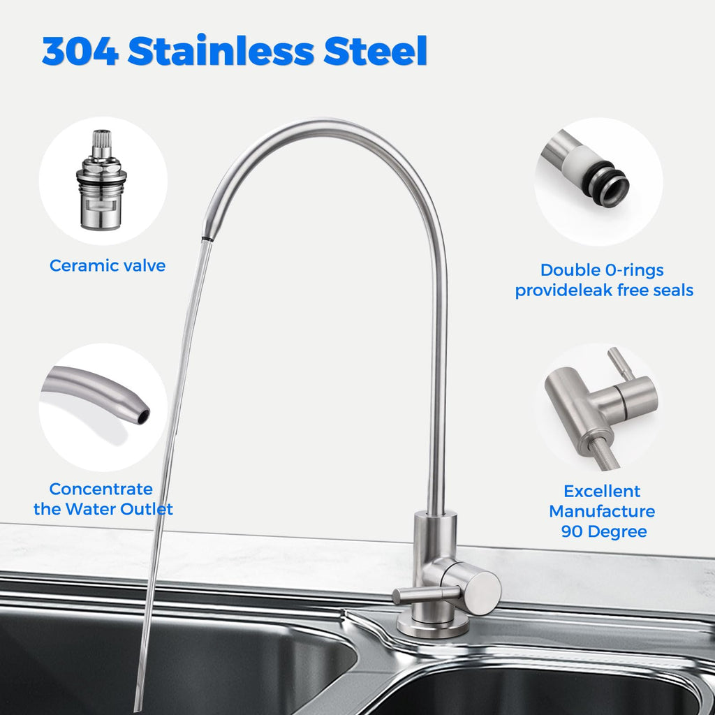 Premium Quality Material: Crafted with high-quality SUS304 stainless steel, this faucet ensures durability and longevity. The modern brushed nickel finish adds a touch of elegance to any kitchen or bar sink. Lead-Free and Safe: The Water Filter Faucet is made from lead-free materials, providing you and your family with peace of mind while enjoying clean and filtered drinking water. It meets all safety standards and regulations.