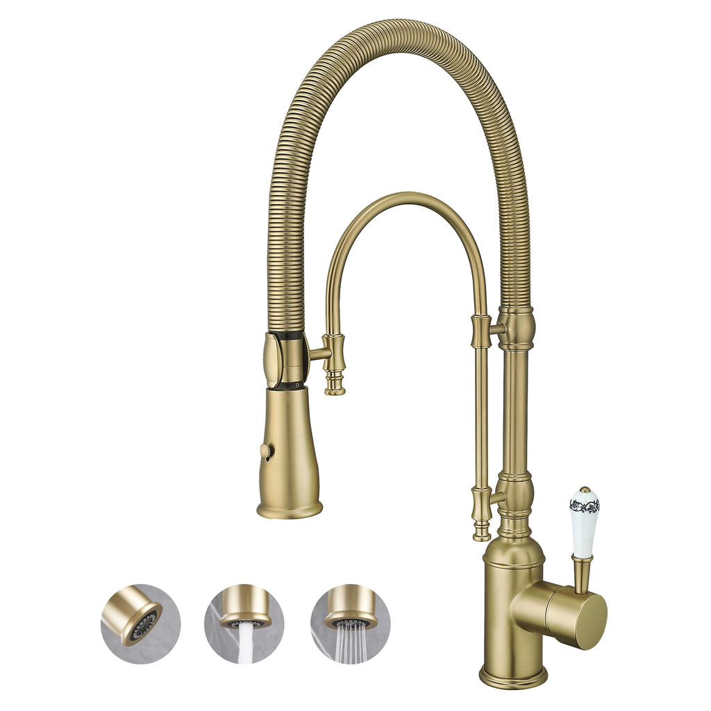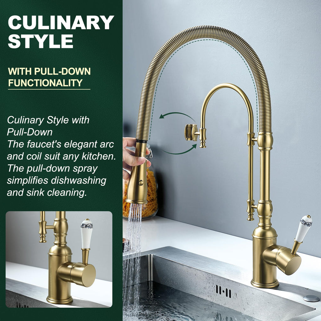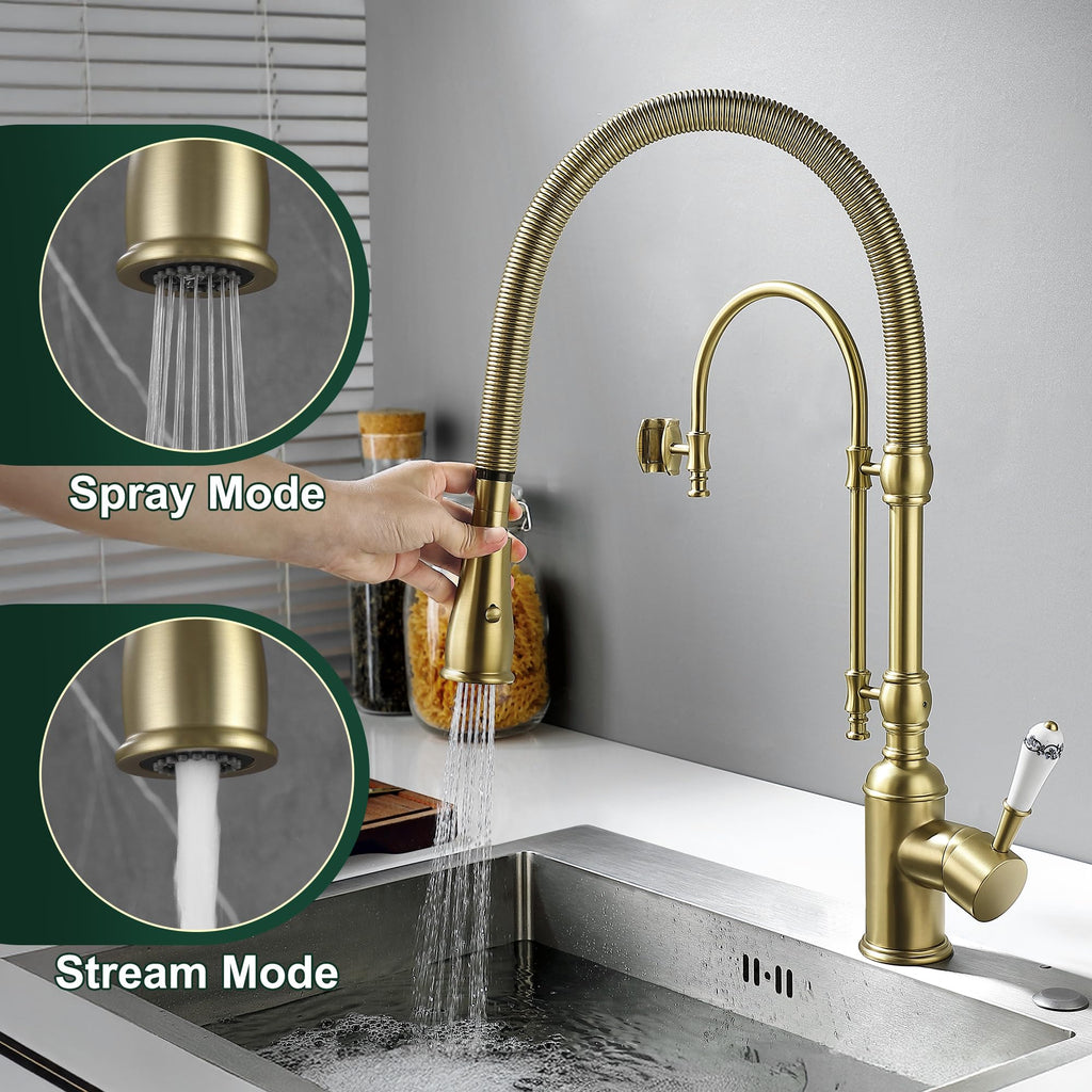 NO LEAKS: Lead-free brass is the best material for kitchen faucet, provide enhanced leak-tightness, Ceramic cartridge reduces leak points, survive 500,000 times open & close test. EASY TO CLEAN:The surface of the solid brass kitchen faucets brushed nickel finish resists corrosion, fingerprints and water spots, it can be cleaned by cloth in daily use