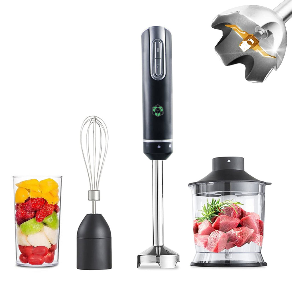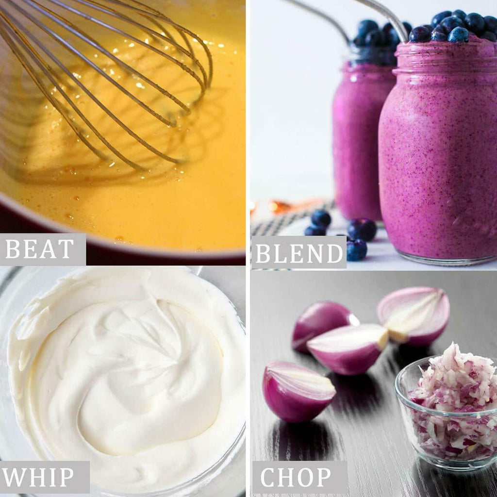 Ergonomic Design: Detachable 8" Blending Shaft And Easy-To-Grip Stick Design Helps To Blend The Item In A Pot, Bowl, Or Pitcher. Multiple Functions: The Immersion Hand Blender Comes With A 500Ml Chopper, A 600Ml Beaker And An Egg Whisk. Perfect For Family Daily Use. Sweet Gift To Your Friend Or Families On Thanksgiving, Christmas And Birthday.