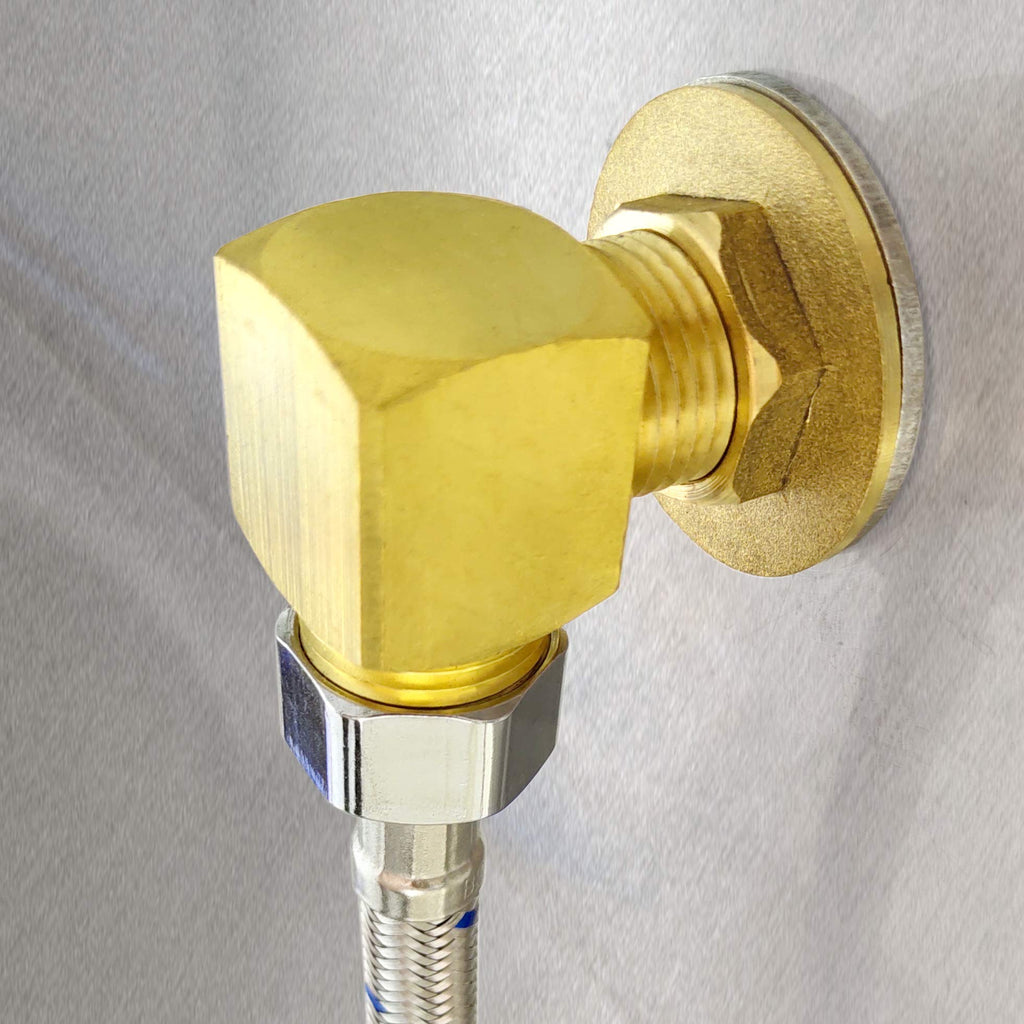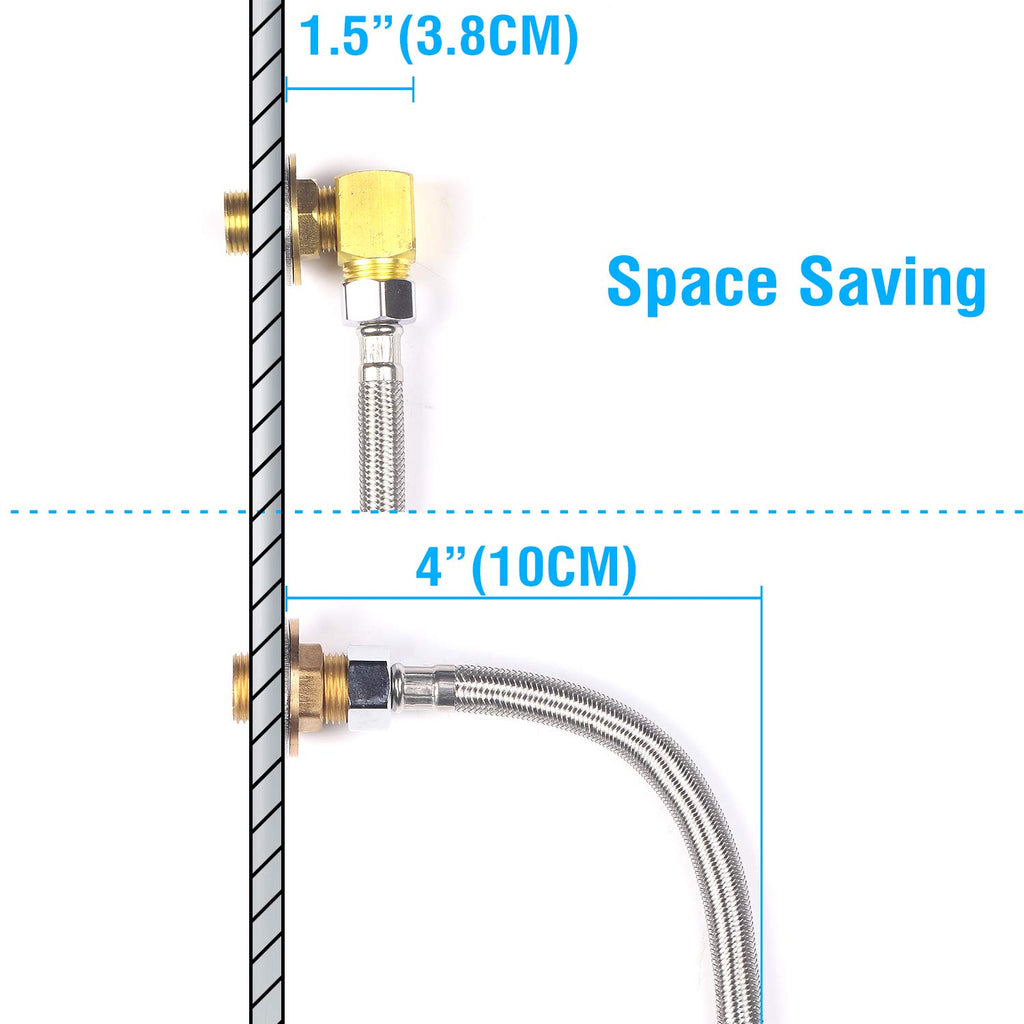 General Compatibility: Inlet size with 1/2 NPT is the standard thread for water inlet connection.(Tip: It is advised to use water tapes to prevent leaking) Space Saving: This angle part is designed for place saving, you can just reserve 1.5 inch space behind the sink for the assembly.