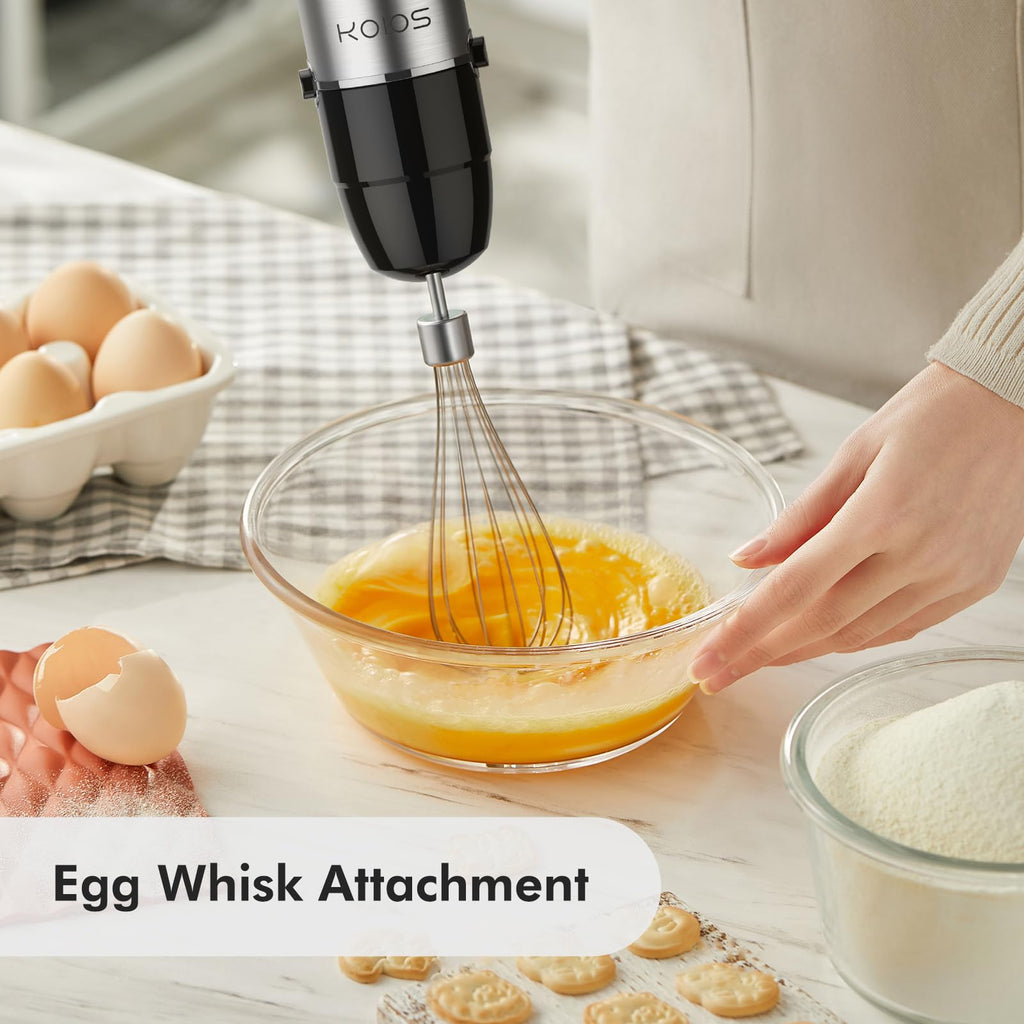 Titanium Plated Blade&Full Copper Motor: Powerful, Low Noise, 1000W Heavy Duty Copper Core Motor Delivers Perfect Processing For The Electric Hand Blender In Few Seconds. Built In Titanium Plated Sharp 4-Point Blade Shaft Helps You Whisk And Chop In Seconds And Then Blend And Puree In Less Time Multifunctional Handheld Blender: Koios Immersion Handheld Blender Kit Includes Stick Blender Shaft, Stainless Steel Egg Whisk, Milk Frother, 500Ml Chopper Bowl, 600Ml Mixing Beaker, Perfect For Making Baby Food, Smoothies, Soups, Mayonnaise, Meringue, Chutney, Salsas, Crêpe Batters Ect.