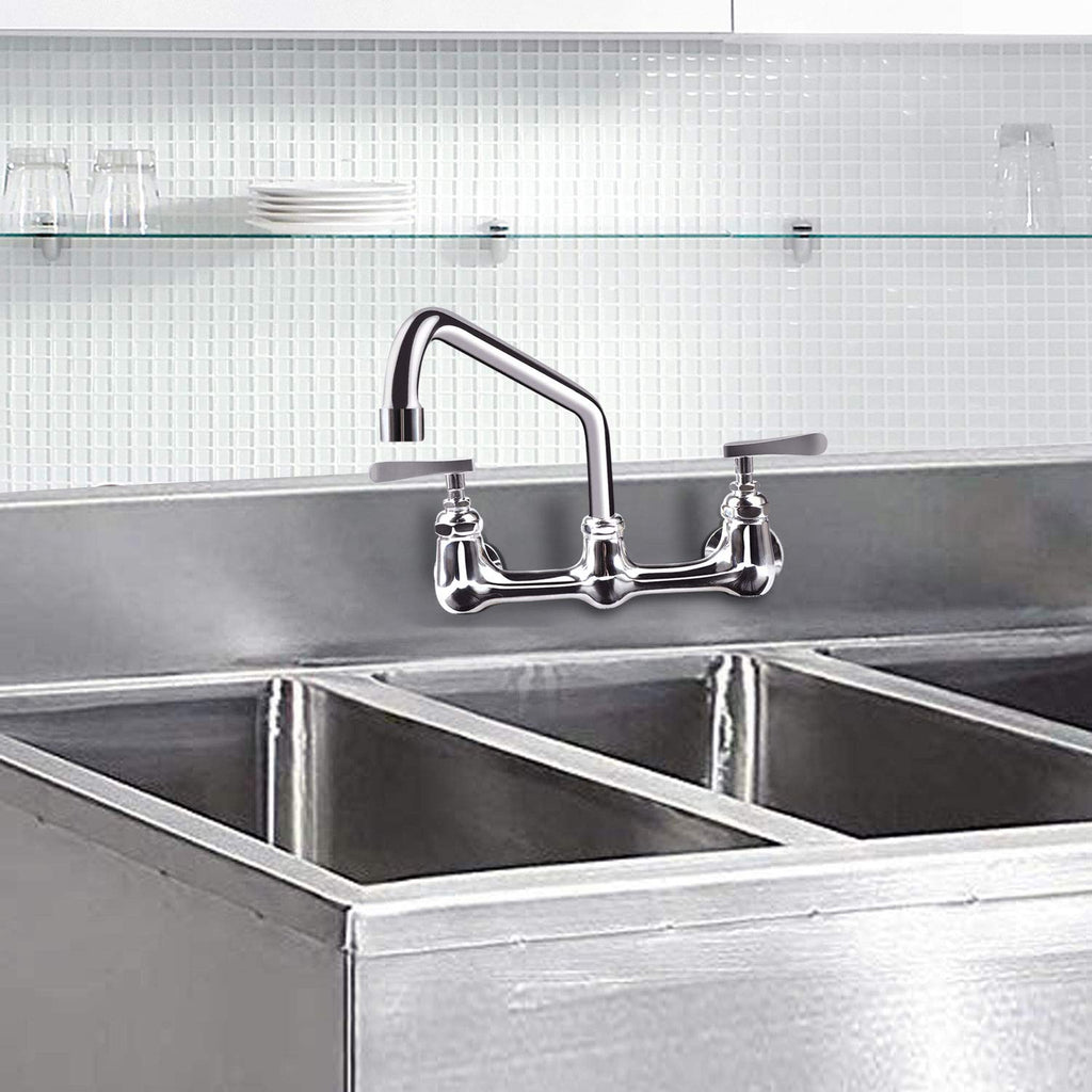 • 12 inch Gooseneck Swivel Spout: 12 inch spout reach is designed for commercial faucet working on 2 or 3 bowls prep & utility stainless steel compartment sinks at home, restaurant or industrial kitchens.