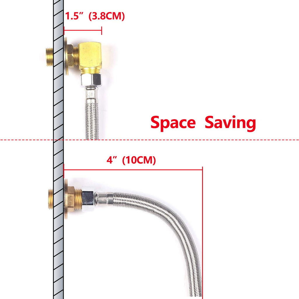 • Saving Much Space This angle part is designed for place saving, you can just reserve 1.5 inch space behind the sink for the assembly. Any issue, please contact us from your order, we promise will reply and fix your concerns in 24 hours.