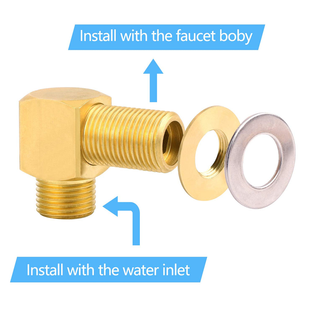 Wall Mounting Kit Size One longer size is G1/2(also called 1/2 IPS) which is used for connecting faucet, the other side size is 1/2” NPT is to connected with your water supply.(tips pay attention to keep some water tape to avoid leakage) Healthy Material Made Lead free brass constructed, two 1/2 NPSM short elbow male & male(female adjustable) mounting kit, two lock nuts, two washers (tips: the nut diameter is only 1.6”, it better to cover under 1.55” sink holes)