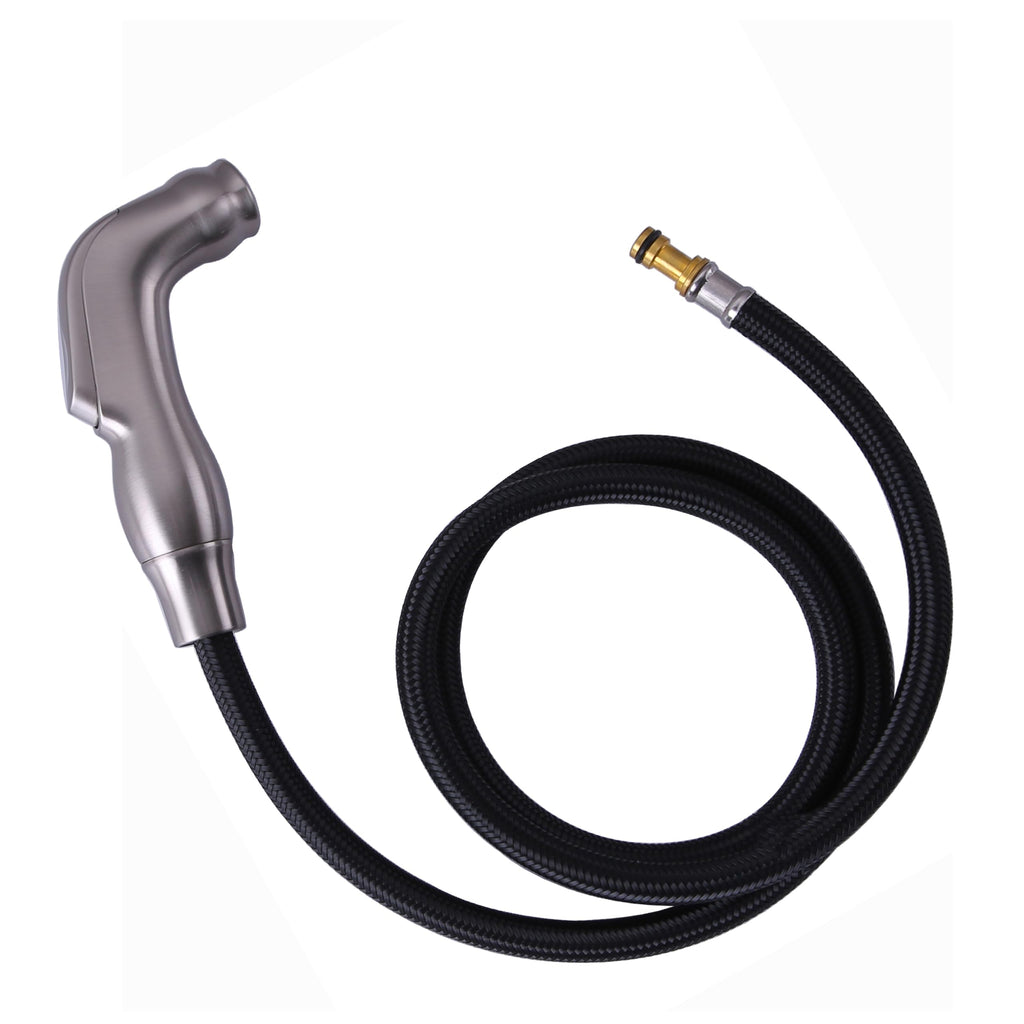 PREMIUM QUALITY OF KITCHEN SPRAYER - Durable ABS plastic construction with scratch and stain resistant protection for kitchen sprayer heads and holders. Easy Installation and Use - Comes with a braided hose, washer, and side spray holder for convenient installation. One-touch trigger action makes it easy to use.