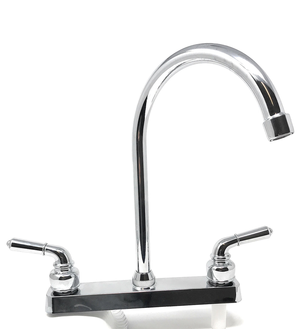 Need a nice and affordable Kitchen sink faucet Then This is right for you Built with long lasting and hard working plastic that will live long. nice chromed finish, it will make everyone who does not have one, jealous It is to be installed in a 8" centered sink It is recommended for any product that needs installation to be performed by a qualified person or licensed contractor, plumber, or gas-fitter technician. Use pipe thread sealant between all connectors for proper seal and leak test all connections prior to use as a safety measure.
