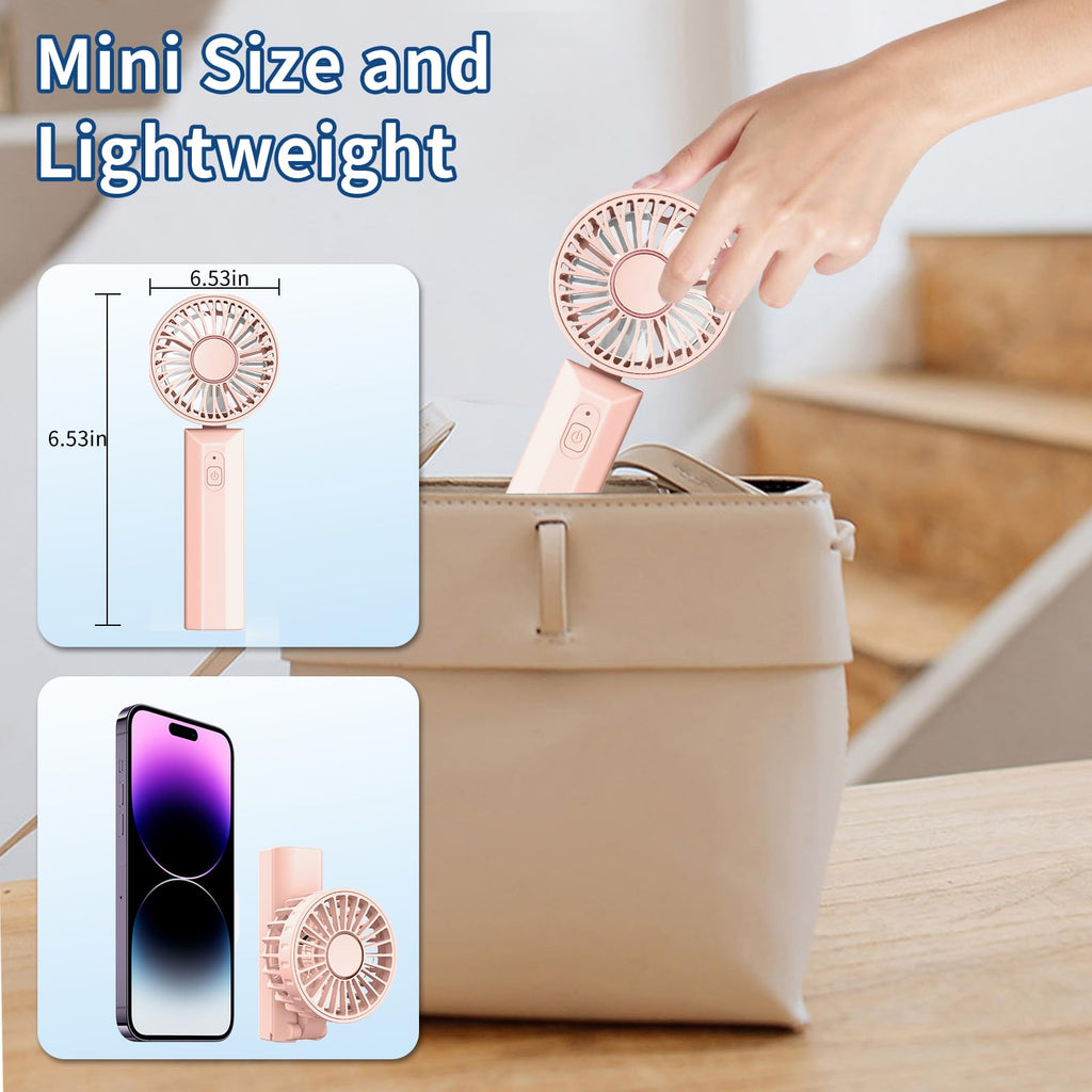 Pocket Portable Fan This portable fan is very small. You can easily put this mini-hand fan in your pocket or bag without having to take up too much space. Charging fan This charging handheld fan is equipped with a charging cable with a Type-C port. You can use a charger, computer, vehicle charger and other devices to charge it. Charging for 2-3 hours and working for4-12hours.