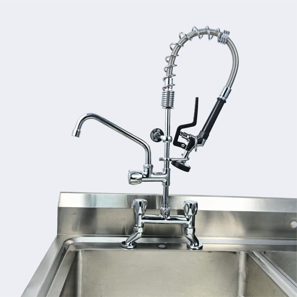 • Restaurant Faucet: Durable Stainless Pressure and Heat Resistant Steel Hose With Food Grade Polyurethane Inner Tube.Brass Faucet Base with Swiveling Add On Spout for Complete Assess of Kitchen Sink