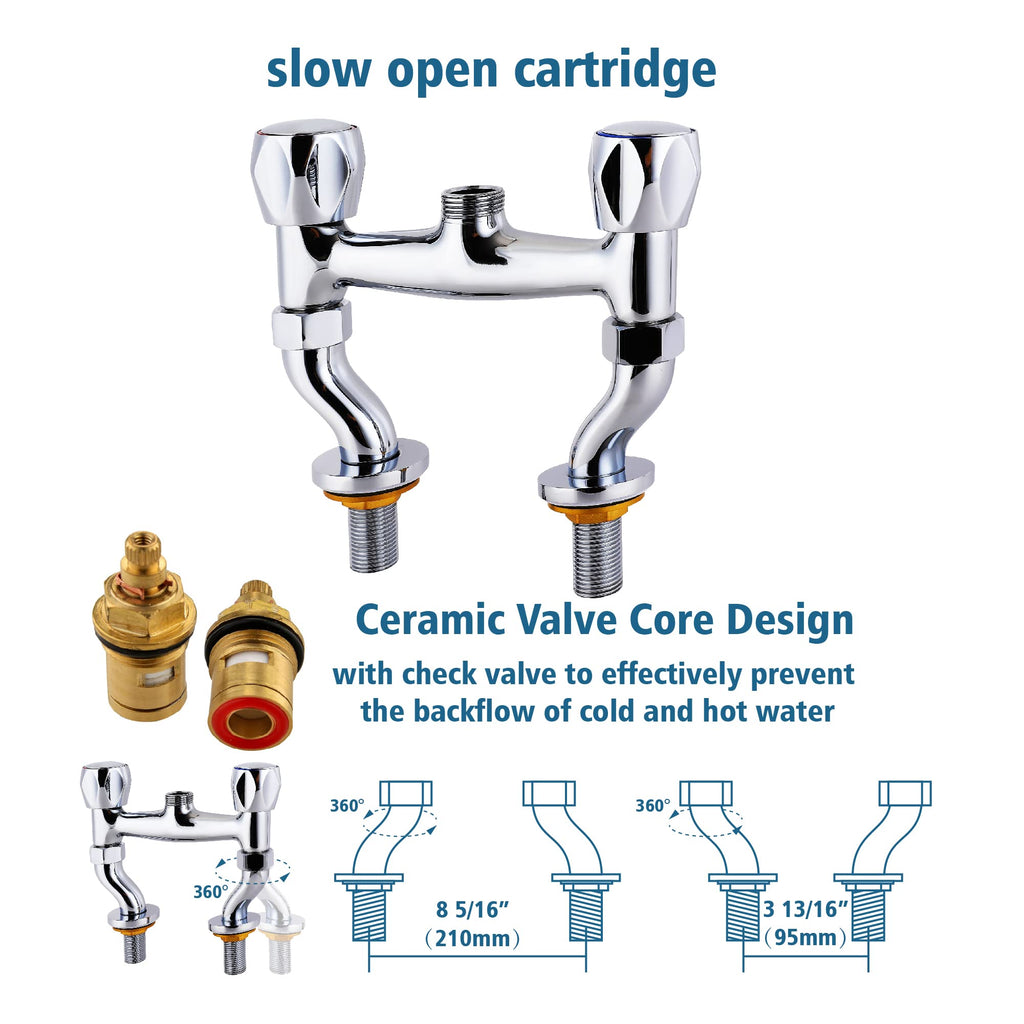 • Restaurnt Faucet With 8" Swing Spout: Deck mount commercial sink faucet with 8 inch add-on swing spout,360° rotation. Comfortable height of 25 inch is good ideal for dishwashing at bar sink commercial kitchen sink or home restaurant industrial sinks.