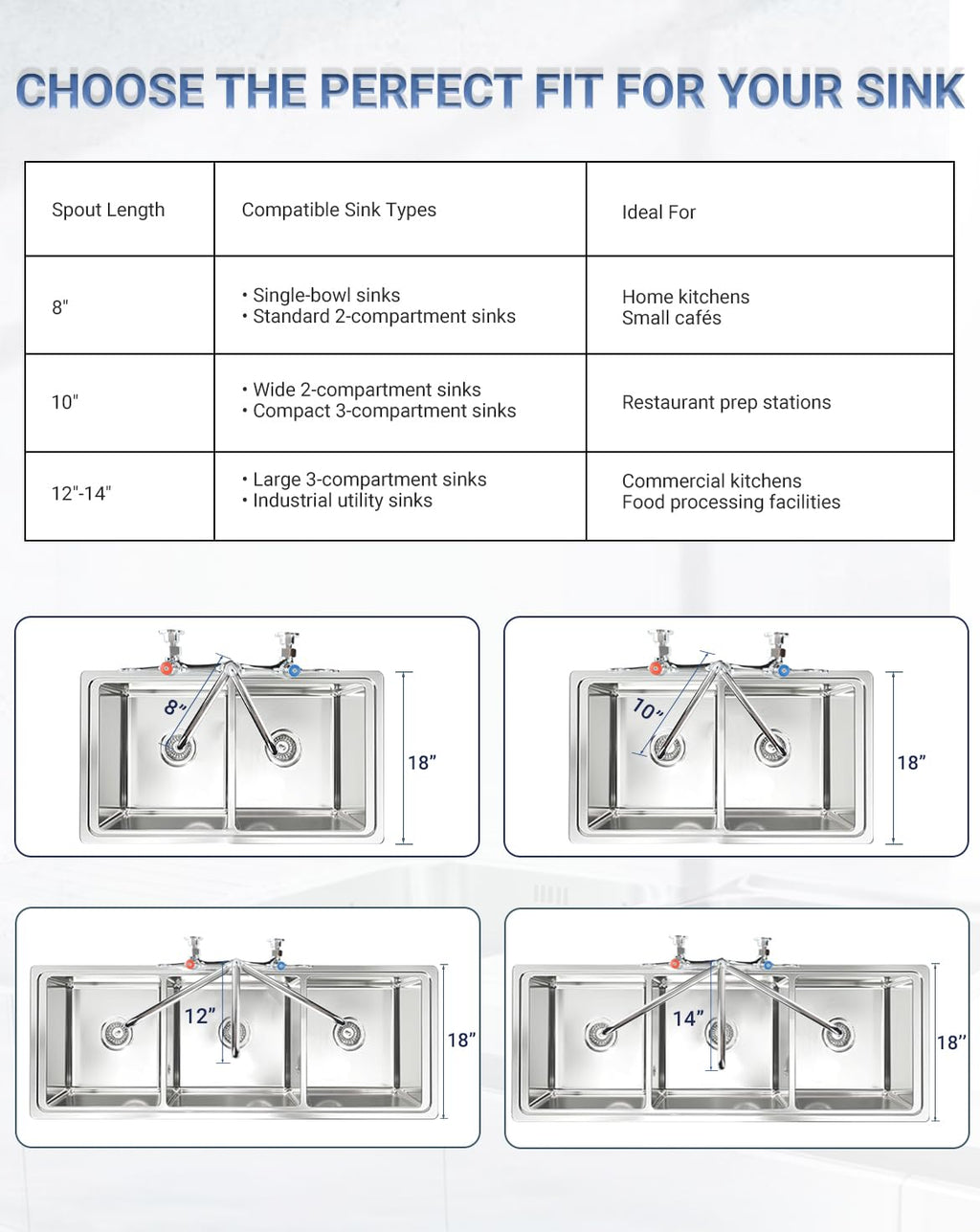 • Comprehensive Accessory Options: To further enhance convenience, we provide a wide range of replacement parts and accessories, including different spout lengths and brass fittings. This ensures that your faucet can be easily maintained and customized to meet your specific requirements, ing long-lasting performance and satisfaction.