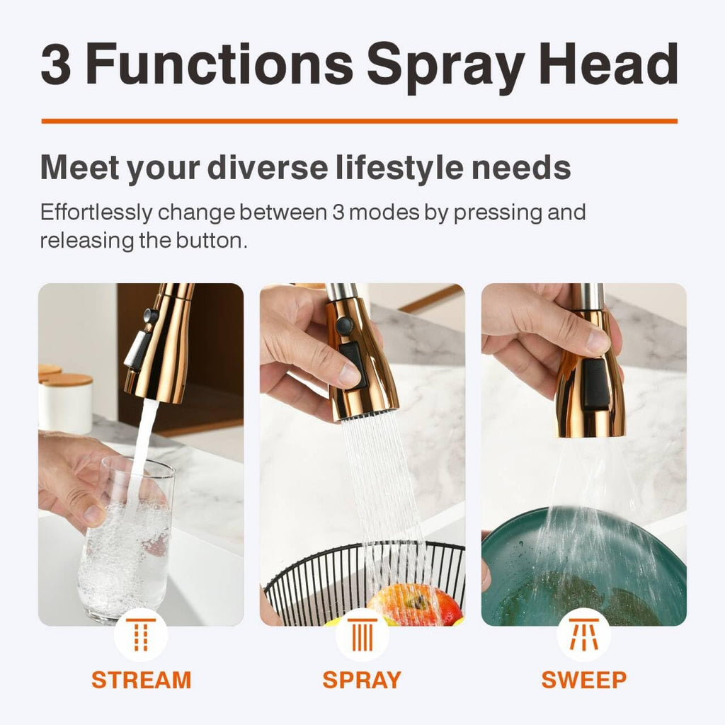 • Simplicity at its Best: Experience the beauty of simplicity with our pull-out design kitchen faucet. Its clean and fresh design effortlessly matches most sinks, and the flexible spout s water exactly where you want it.