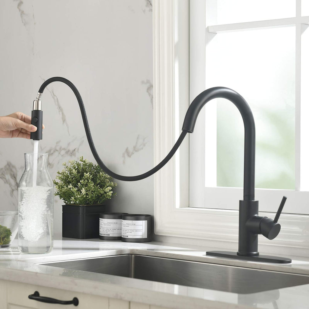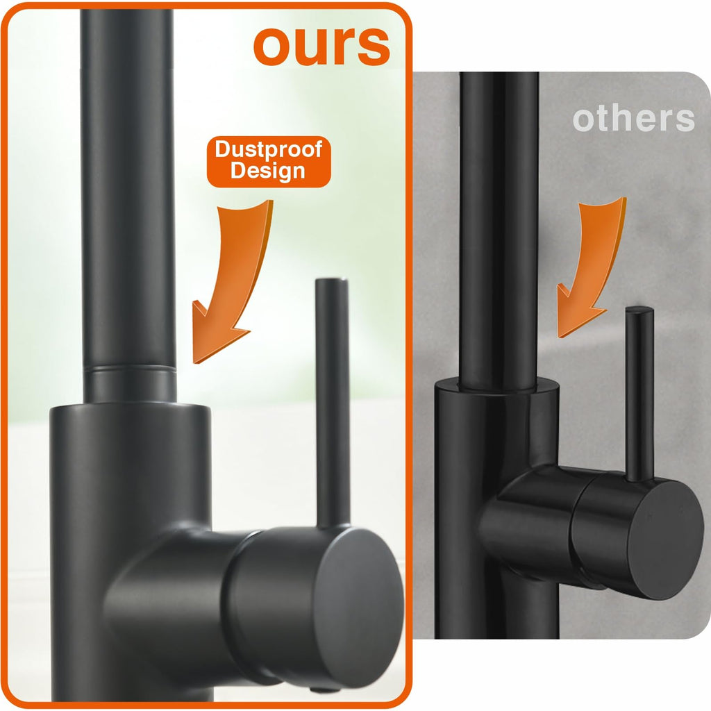Convenient Expandability: This retractable hose can be expanded up to 24", allowing for effortless reach and easy handling around the sink. Refined Design: Due to the flawed design of the rotation position in ordinary faucets, impurities can easily accumulate inside, causing the faucet spout to become immovable after prolonged use. However, our refined design completely addresses this issue, significantly enhancing the lifespan of the faucet.