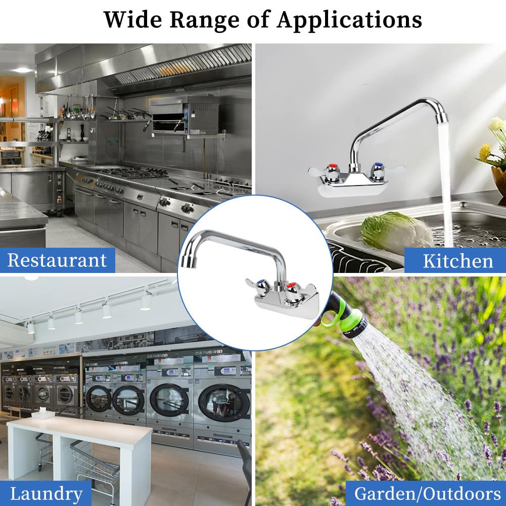 • Wide Application Scenarios: Suitable for most indoor or outdoor single kitchen sinks and double sinks. Widely used in kitchens, restaurants, laundry rooms, farmhouses, gardens, and bars. Dual temperature handles can deliver hot or cold water directly to wherever you want.