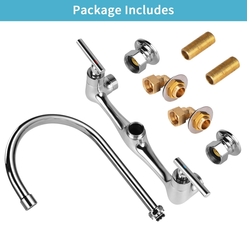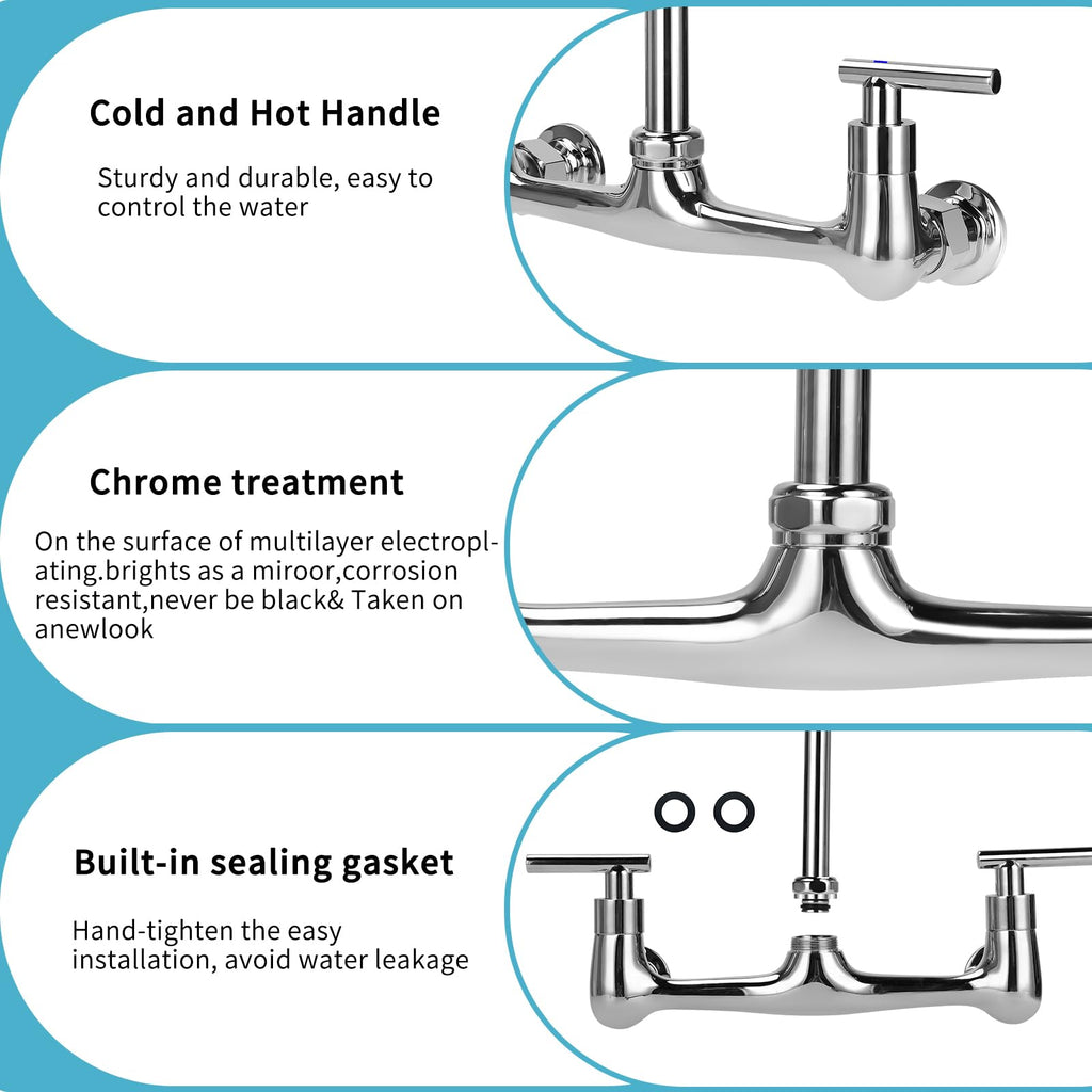 • 2 Handle Backsplash Mount Faucet: 2-handle hot & cold control, easy control of water temperature. Comes with a pair of 1/2 NPT male installation kits, which can be adjusted to fit space requirements. just DIY installation follow the manual. (Tips: please make sure each gasket is in your female connectors)