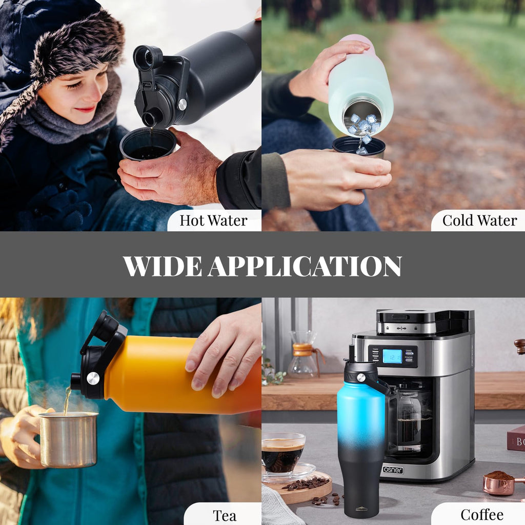 • 【Two Lid Options for Your Convenience】Enjoy the flexibility of two lid styles: the straw lid for convenient sipping and the wide-mouth leak-proof cap for easy carrying and pouring. From a quick sip on your bike ride to a big gulp during a hike, or gym sports, lounging etc. it adapts all your needs.